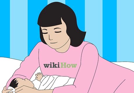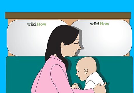 Place a mattress or crib right next to your bed. If possible, use an elevated baby crib that can turn into a daybed. It is best if the crib is the same height as your mattress. If using a mattress, place it on the floor next to your bed, as it would be dangerous to place your baby on a bed if she is old enough to roll.