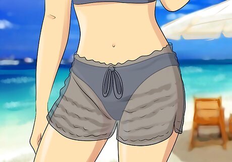 Wear shorts. A simple pair of shorts can be thrown on over your swim bottoms to take a break from the beach. Drawstrings or elastic waist shorts are great for the beach as you can slip them on and off easily. Shorts can give you a fun, sporty vibe when worm with your swim top.
