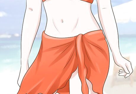 Use a wrap. You can buy a light wrap to cover your lower half at most department stores near the swim gear section. Wraps are easy to slip on and off as you wish at the beach. They come in a variety of textures and styles. Cotton wraps are good for chilly days, but you can also get a mesh, spandex, or crochet wrap. Match your wrap to your swimsuit top. Pick a matching color and complimentary pattern.