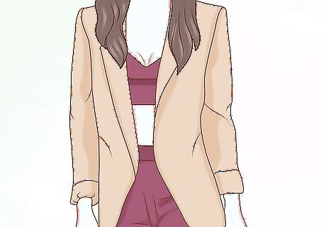 Wear the bralette under a blazer. This is a sexy look that may be a little too much for work. Wear a bralette as a shirt underneath an open blazer. You can pair the blazer with a pair of matching pants or nice jeans. You can also pair the bralette with a high waisted skirt if you don’t want to show as much skin.