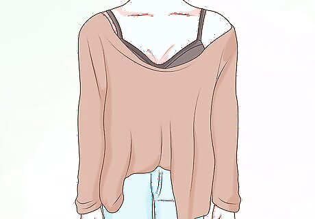 Go for an off-the-shoulder look. This works best with a long-sleeved shirt or sweater. The shirt should be fairly loose on you, and allow the shirt to fall off one shoulder so that it reveals the strap of your bralette. Wear a cotton sweater with the sleeves rolled up. Pair the sweater with white pants and sandals for a day out.