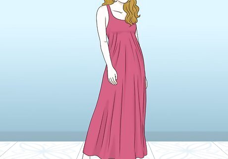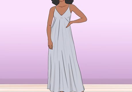 Go for a relaxed vibe by wearing a loose, flowy frock. Select a comfortable dress to wear while you’re on the go. If you don’t want to coordinate an entire outfit, a long dress can be a great way to save time while still looking stylish! Try choosing a solid or neutral-toned garment if you don’t want to choose a color scheme. For example, slip on a long, gray dress that flows from your waist to your ankles.