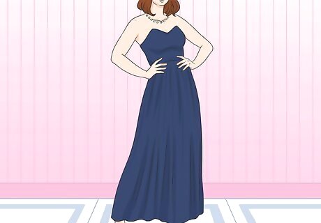Show off your features with a strapless gown. Opt for a more revealing outfit by leaving your neckline and shoulders completely visible. Choose a neutral, creamy-colored gown to create a softer look. If you’d prefer to stand out, select a dress that’s a brighter color. For instance, create a bold look with a long, strapless gown in bright yellow or navy blue.