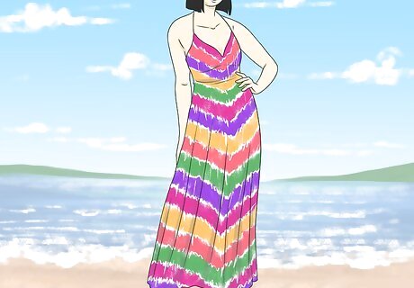 Opt for funky, relaxed patterns in your outfit if you want to go for a bolder look. Add a splash of color into your daily look by choosing multi-colored garments. Search in your closet for bright, funky designs that incorporate a lot of fun colors and patterns, like stripes and geometric shapes. Once you’ve selected a fun dress, pair it with neutral or solid-toned shoes and accessories! For instance, choose a long dress with a tie-dye pattern to create a fun, casual look.