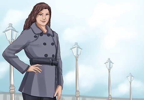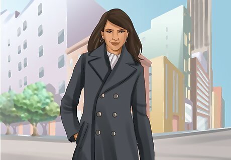 Select a double-breasted peacoat for a classic look. You can wear a double breasted peacoat buttoned up, or with the top and bottom button undone. On women, this can give a more masculine look and can make you appear authoritative and powerful. Avoid wearing your peacoat open, as it can look boxy and unflattering. A double-breasted peacoat tends to be tighter across the chest area, so pair it with a light knit sweater, blouse, and jeans or slacks.
