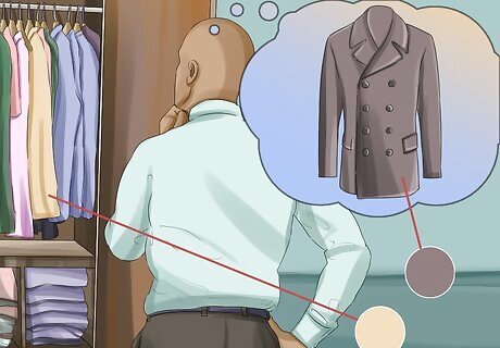 Select a color that goes well with your wardrobe. Men’s peacoats tend to come in black, brown, grey, and navy. All of these colors are versatile but provide different options for your wardrobe, and might have different functions depending on how you wear them. For example, brown peacoats are considered less formal and might be better for a casual outfit of jeans a t-shirt. Navy and black peacoats are more versatile and can be dressed up with slacks, a button down, and a tie, or dressed down with jeans, a beanie, and a sweater.