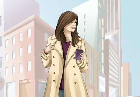 Try a bright color to stand out from the crowd. Women’s peacoats come in a variety of colors in addition to the normal black, grey, brown, and navy. You might try a maroon, mustard, or green peacoat for the autumn months, or you might opt for a stylish “winter white” peacoat. If you opt for a neutral peacoat, you can still add color with accessories like scarves, jewelry, and belts. Patterns like plaid and herringbone are popular for peacoats and can make a different eye-catching statement.