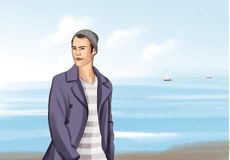 Accessorize with a hat or sunglasses, depending on the weather. Peacoats are a very stylish piece of clothing, and the addition of a simple hat or a pair of sunglasses can make your outfit go from bland to exciting. Depending on the weather or your mood, you might choose one or the other to accomplish a casual or formal look. Aviator sunglasses are great for a sunny day and can make your jacket look more formal when paired with slacks and a button down. A beanie is a great winter accessory that will keep you warm and complete your casual outfit when paired with your peacoat and a pair of jeans and a knit sweater.