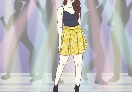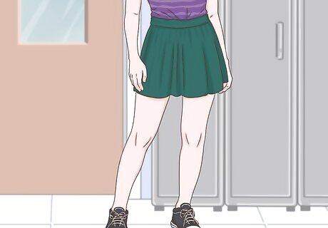 Select a longer skater skirt if you prefer to show less skin. Many people think they have to give up their skater skirt if they don't want to bare their skin. In fact, you can still wear one. Just buy it a little longer and style it the same. Skater skirts can be as long as knee-length. Most people like skater skirts best when they hit about 3 inches (7.6 cm) above the knee. Longer skater skirts have the added benefit of being appropriate in more places, like the office.