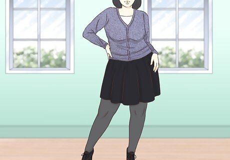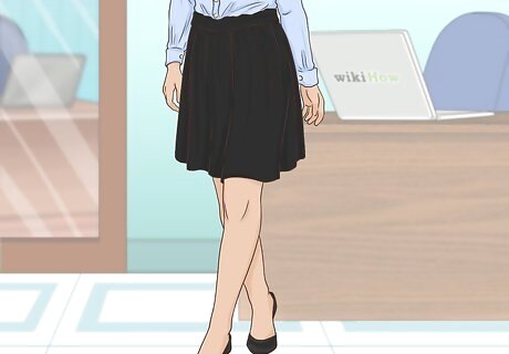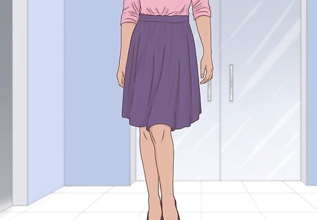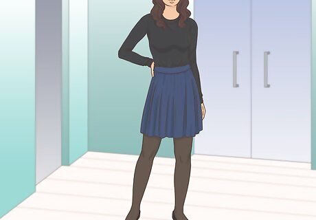 Style your skater skirt with flats and a long-sleeve blouse for the office. Make a skater skirt appropriate for work by wearing it with a demure long-sleeve blouse. Dark or neutral colors are better for work. Add tights or hose and your favorite flats to finish the look.
