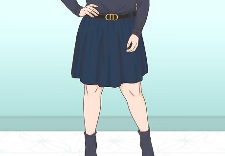 Pick a dark-colored skater skirt if you want to look thinner. Dark colors are always slimming and that’s no different with skater skirts. You can even find patterned skater skirts in darker colors. These colors are also more versatile because you can wear anything on top. Emphasize your waist even more by wearing a belt that contrasts with your skirt.