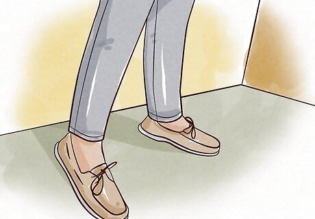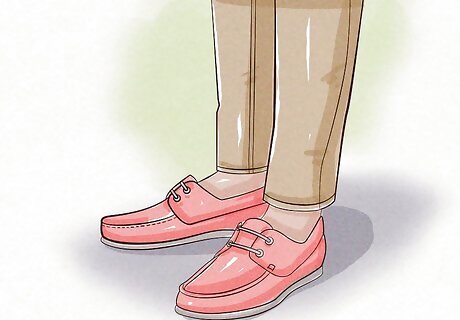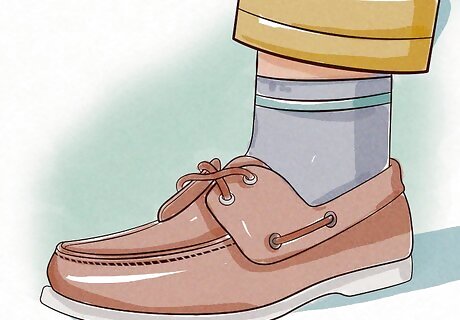 Don’t show your socks with your boat shoes. Boat shoes are low cut and meant to be worn without socks. If you must wear socks with them, choose a pair that would not show above the tops of your shoes.
