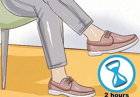 Wear them for 1 hour every day. Since boat shoes are usually made of leather, it will take some time to break them in. Start by wearing them around your house for an hour each day. If they feel fairly comfortable, you can wear them for 2 hours each day.
