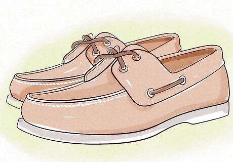 Choose brown leather for a diverse and classic look. Light or dark brown leather is the most common and traditional boat shoe material. Brown boat shoes are a great choice because they pair well with a variety of outfits—such as jeans and a T-shirt or a button-up and shorts. Plus, this color shows the least amount of stains.