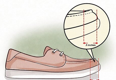 Pick a shoe that fits comfortably. Boat shoes are meant to be comfortable, so it is important that they fit correctly. When you stand, there should be a .5 inches (1.3 cm) of space between your big toe and the tip of the shoe. The ball of your foot should fit comfortably and securely into the middle portion of the shoe.