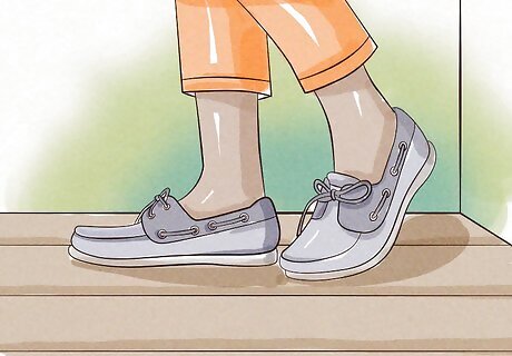 Avoid wearing them with formal attire. Boat shoes pair well with semi-formal outfits, such as a pair of slacks and a blazer. They do not, however, pair well with a tuxedo. Choose a lightweight loafer if you are looking for a shoe to wear for a summer wedding or other formal occasion.