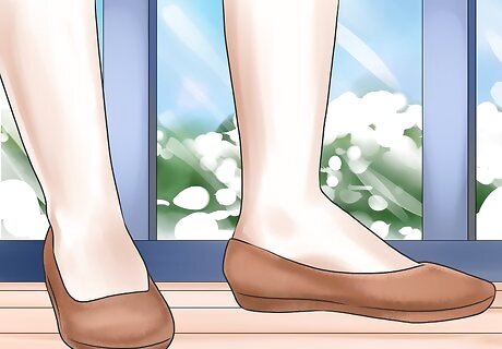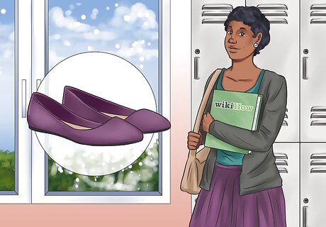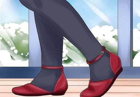 Try casual flats at school or on a day out. You can wear more casual flats to school or for running errands during the day. Wear plain leather ballet flats to school or patterned flats for a day of errands. You may go for flats that are easy to slide on and off with socks or tights. Wearing flats with socks and jeans can also be a fun casual day look. Go for colorful socks with plain flats and skinny jeans for a casual but put together look.