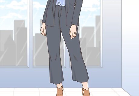 Bring style to the office by wearing booties with cropped pants. If you want to dress up your booties for work, try wearing them with a pair of ankle-length slacks, either slim-cut or wide-leg, and a silky tank top or cami with a fitted blazer. You can also wear your booties with regular slacks, although some of the details will be lost. Bootie styles that are wide-open all the way up may not be office-appropriate, but booties with a smaller opening just near the toe are fine.