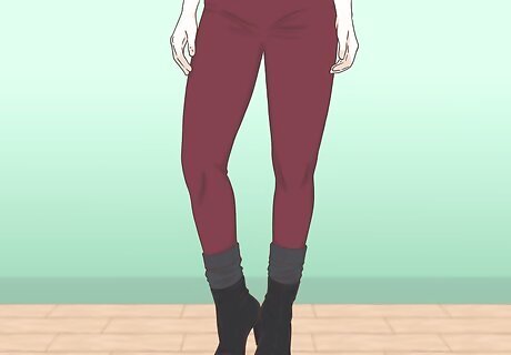 Wear your booties with coordinating socks if the weather is cold. While peep-toe shoes with socks is a tricky look to pull off, it can be done. Look for a cute pair of socks with a seamless toe in a color that complements the boots. Avoid thick, plain-white socks, which typically don’t look very stylish. You can find cute boot socks at many boutiques. Opt for a slouchy style to keep your look casual.