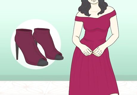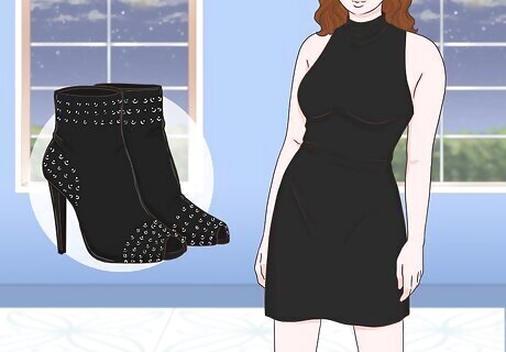 Add an edgy touch by wearing your open-toed booties with a long gown. A special occasion can give you a great excuse to wear a glamorous gown, but that doesn’t mean you have to stick to a pair of pumps or stilettos. If your style is a little bit edgy, try wearing your booties with the gown, instead. For an even more rebellious look, add smudged black eyeliner and dark lipstick.