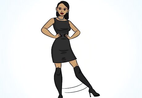 Wear a slip dress with your boots. Pairing a slip dress with over-the-knee boots is a fun and sexy look. A silk slip dress and beige suede boots is one choice for an outfit. You can also wear lattice boots if you want to show even more skin. If you feel uncomfortable wearing only a slip dress, put on a white t-shirt under the dress. Wear a choker necklace or simply jewelry with the slip dress and boots.