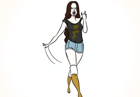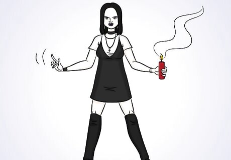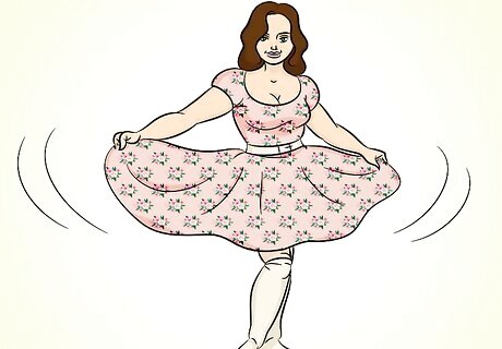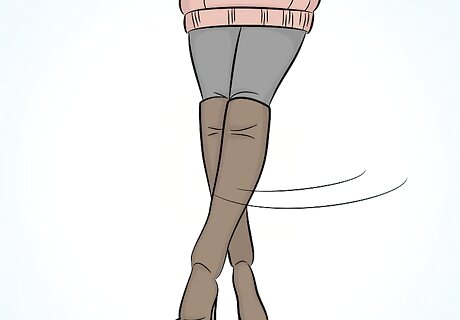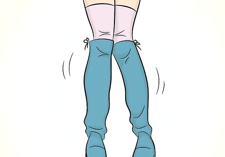Pair the boots with knee-high socks. Knee-high socks are important if you’re not wearing stockings, but you can style them to be a noticeable part of your outfit rather than just a boring necessity. Wear knee-high or thigh-high socks that extend over the edge of your boots. Look for socks with frills or lace at the ends. You can also choose to wear a bold color or socks with designs if you want them to be noticed.