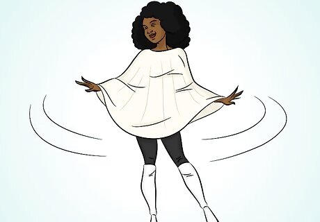 Put on a poncho with your boots. A poncho and over-the-knee books is a quick and easy look to put together. Wear the poncho with a long-sleeved shirt and skinny jeans or leggings. Pair the boots with thicker socks that don’t make your boots too tight. You can wear a thick, jacket-like poncho with faux-fur during colder weather.