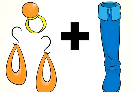 Match your accessories with your boots. Match your accessories with the material or color of your books. For example, if you’re wearing leather boots, wear leather accessories. Wear leather gloves and a purse with your boots. Look for velvet or suede accessories if you’re wearing suede or velvet. If you can’t find accessories made of the same material as your boots, choose a color that matches or complements them. With blue boots, you can choose orange accessories as a complementary color.