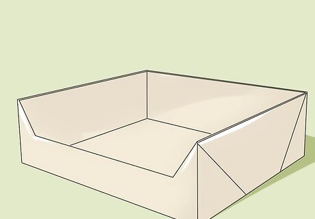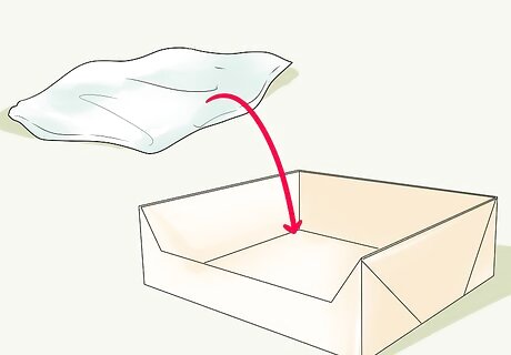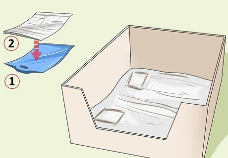 Line the whelping box. Your whelping box needs to be soft and cozy inside for your new puppies and your large breed dog. Place a large plastic bag in the bottom of the box. Place layers of newspaper and/or a few cozy blankets or sheets over the bag. Never add wood shavings, sand, or other particulate to the whelping box. Don't add anything small enough that the puppies could get them lodged in their mouths. After being born their eyes will still be closed and they will be constantly searching to suckle.