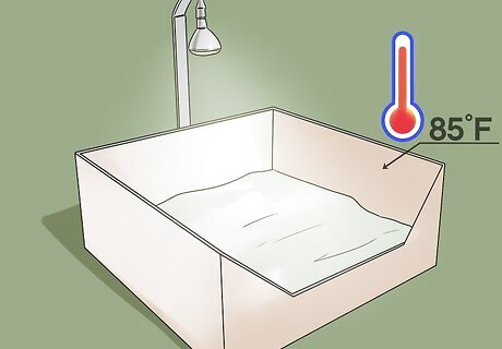 Place a heat lamp above the whelping box. The lamp should be suspended over one corner of the whelping box so that pups can move toward or away from it depending on their temperature preference. Newborn pups have a lower core body temperature than adult dogs and are extremely sensitive to temperature changes. Aim for a whelping box temperature of 85 degree Fahrenheit.