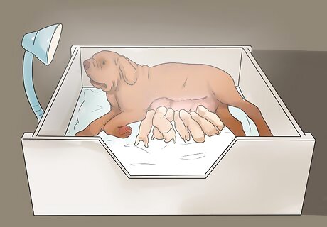 Put the dog family together. After your large breed dog is back in its whelping box, take the pups out of their incubation chamber and reunite them with their mother. They may be hungry and want to suckle again. The puppies will remain vulnerable for several weeks and should not be separated from their mother until your vet indicates that it is okay to do so.