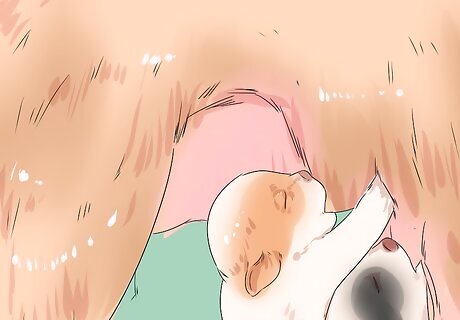 Allow the pups to nurse. All the excitement of being born will make your puppies hungry. Some pups need a brief rest before nursing. Other pups are able to head straight for their mother and suckle their fill. In either case, wait until the puppy has finished nursing and your dog is back on its feet before removing the pup to the incubation chamber. Remember to allow the mother plenty of time to eat and drink lots of water. Feeding many puppies takes a lot of calories so your dog needs more food and water to keep her milk supply up.