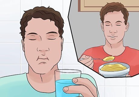 Rinse your mouth with water after eating. When you eat food, your mouth temporarily becomes acidic. This softens the enamel on your teeth, so if you brush immediately after eating you can damage the enamel. Wait at least 30 minutes after eating to brush your teeth and, in the meantime, rinse with water to prevent stains. Whitening toothpastes can remove stains, but they won't prevent them. Coffee, tea, wine, and even blueberries can stain your teeth. Smoking can also yellow your teeth. Rather than avoiding healthy foods that might stain, you should rinse your mouth after eating. Floss regularly to remove particles of foods from between your teeth and under your braces.