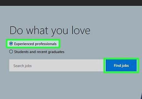 Look for upper-level positions if you're an experienced professional. Microsoft has open roles for experienced professionals in 15-20 professional categories at any given time. Select the field that applies to you, read the available job descriptions, and apply to any that you are interested in. The Microsoft Careers website will allow you to apply for any number of positions, so don’t limit yourself! After you finish applying for jobs, your resume will be sent to Microsoft recruiters. They will review your information to determine if you qualify for the positions you applied for, and may reach out to you about any other jobs you might be a fit for.