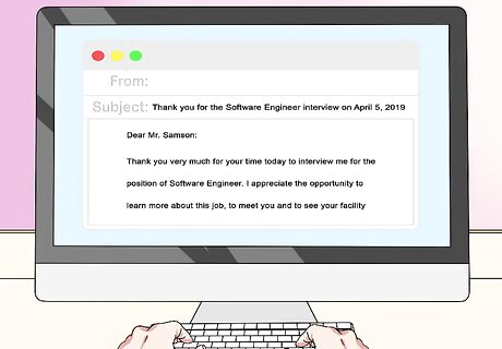 Send a brief thank-you email to each hiring manager you interview with. This is a simple way to follow up with each interview and to demonstrate your appreciation for the time. Not as many people do it as you might think, and it’s an easy way to leave a good impression. The thank-you email doesn’t need to be long or take a lot of time to write, just address the interviewers, thank them for their time, restate your interest in the position, and tell them you look forward to hearing back about the opportunity.