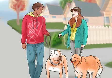 Be vigilant in public situations. A dog often shows signs associated with dominance in public situations. This is often because the dog is under greater pressure, is being challenged by other dogs, or feels the need to protect himself or you. Maintaining control of your dog by reminding him of his obedience training can help you avoid unwanted situations.