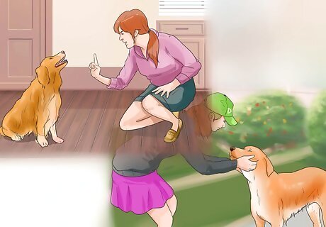 Use clicker training. Clicker training is a reward-based training method that teaches a dog to associate the “click-clack” of a clicker with getting a reward. The “click-clack” marks the exact moment of the good behavior, so the dog understands exactly what he has done right, and is rewarded with a treat. Begin with basic commands such as “sit,” “stay,” and “here,” then move on to commands like “fetch” and “give.” Eventually, your dog will become habituated to looking to you for commands and guidance even without the clicker.
