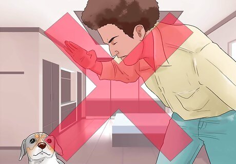 Know when to chastise your dog. Your default position should be one of praising good behavior, not punishing bad behavior. However, if your dog is about to harm himself or another creature and it is happening right now, it may be appropriate to punish the dog. For example, if your dog jumps on your pet cat, you may want to give him a sharp “no!” rebuke accompanied with a loud clap to startle the dog. Be aware of the limitations of this approach; your dog may learn to only attack the cat when you are not in the room. Dogs do not understand punishment for behaviors that were performed in the past, even if it has only been a few minutes. Chastisement is only effective in the exact moment of the behavior.