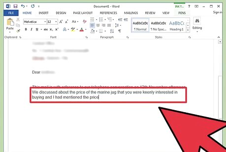 Mention the subject of discussion. For example: "We discussed about the price of the marine jug that you were keenly interested in buying and I had mentioned the price".