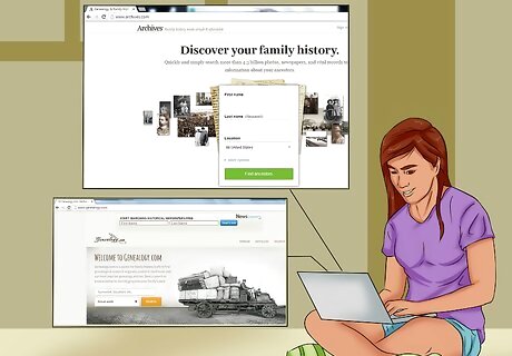 Locate and analyze important records. In the digital age, resources for finding information on your family can be easily accessed on the internet. Here are some types of records that can help you build a family history: Land deeds and records (often available about the National Archives' web site for the U.S. as well as the records division of your local county courthouse) Census information (available at the U.S. Census Bureau's web site) Military records (National Archives) Ship passenger arrival records and land border entries (National Archives and The Statue of Liberty-Ellis Island Foundation Inc. web sites) Engagement/wedding announcements, birth announcements and obituaries (often in local newspapers or church bulletins) School yearbooks or old transcripts (usually available from the person's alma mater) Legal documents such as wills and testaments (also available at their corresponding courthouse) Church registries (check with local churches if you know your family has a history there) Old letters, journals or diaries from ancestors (ask older relatives if they have these) Family recipes and/or cookbooks