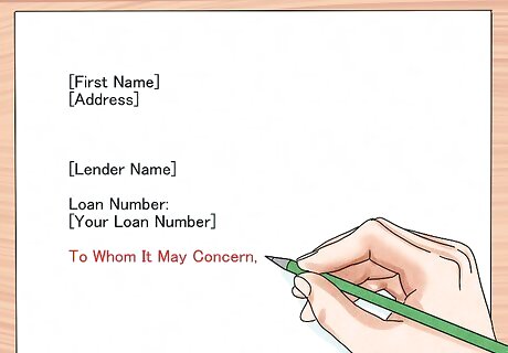 Open your letter properly. Skip another line after your loan number and write in your greeting. This can be either the generic, "To Whom It May Concern" or a "Dear Mr./Mrs./Ms. ___," depending on how much you know about who are writing the letter to. Then, skip another line before beginning the body of your letter.