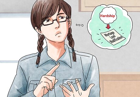 Talk about what you have done to ease your hardship. Write down what measures you have taken to overcome this hardship. Talk about your attempt to refinance the mortgage if you have applied for a refinance and failed to qualify. Describe your efforts to cut household expenses or sell other items to cover your mortgage. If you've lost a job, make it clear to the lender that you are actively seeking a new one. Here is where you can make your case that this loan modification is your last resort.