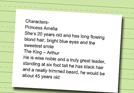 Write down your characters': Looks Personality (Mary Sues' make many stories boring) Background (Did their parents die? Are they royalty?) Flaw (Which is most important. No one likes a perfect person in a perfect world. that makes the story boring.)