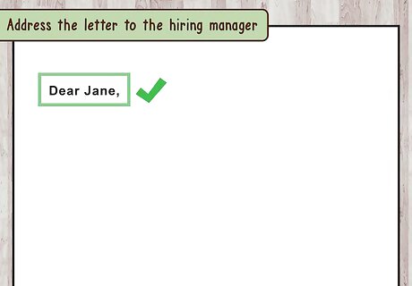 Address the letter to the hiring manager. Like any professional letter, the pain letter should begin with “Dear [hiring manager name].” The hiring manager’s name should appear in the contact section on the job description. You can also look for the hiring manager’s name on the company website.