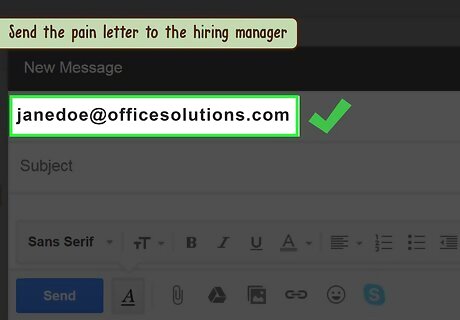 Send the pain letter to the hiring manager. Once the letter is at its best, send it in an email to the hiring manager. In the email, note you are responding to a job description and include a friendly sign off, such as “All the best,” or “Yours.” If you are sending the pain letter blind, you may write a short note in the email outlining the pain you are addressing in your letter and a sign off like, “Hope to hear from you,” or “Please reach out if my solutions seem attractive to you.”