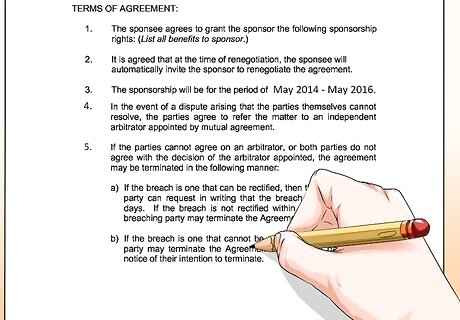 State the purpose of the agreement or the goal to be achieved. Ideally the sponsorship should have a concrete goal beyond the business's desire to improve its reputation and the non-profit's need for fundraising. Discussions between non-profit and business executives can identify realistic objectives to complete using the business's contribution.