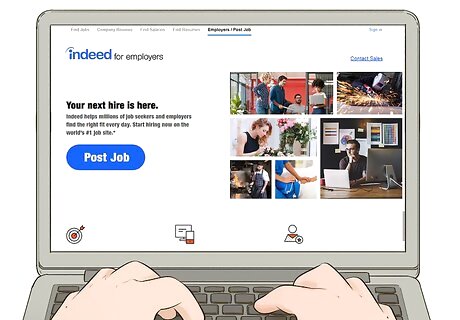Post the ad. After putting the ad together, it's time to post it. Where you specifically post the ad might depend on who your ideal candidate is, so keep the following in mind: More general sites like Craigslist usually have less skilled and specialized jobs posted. Sites like Monster or Indeed also have general postings, but also more specialized ones. For highly skilled jobs, you might want to look into professional periodicals or websites. For example, postings for history professors are usually placed on the American Historical Association's website. You could also use LinkedIn to advertise your job. This way, you can see people's qualifications right off the bat.