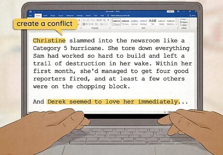 Create a conflict. Everyone knows the end of a romance: the couple lives happily ever after. What you have to decide is why the reader should care by the end. This is where the conflict comes in. Your conflict creates suspense and anticipation in the story. Effective storytelling centers around writing conflicts. Shoot for 2-3 major conflicts throughout the story. Remember each conflict has to be resolved by the end of the story. Give your characters a goal. Then think about what is at stake if the characters don't reach these goals. A common romance conflict is something that keeps the two main characters apart. Your story is about the two characters overcoming obstacles to be together. Another common romance conflict is that the two main characters don't like each other. Other conflicts can be social stigmas, one of the characters is in a relationship, their jobs prevent them from dating, or one doesn't like the other. Make sure to include both internal and external conflicts. Internal conflicts are based on the characters. This can be based on motivations or personalities, or an emotional situation between two characters. External conflicts are things like misunderstandings, circumstances, or influence of another character.