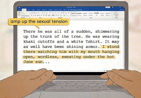 Amp up the sexual tension in each scene. When writing romance, you need each interaction between the main characters to be charged. This may mean using "exaggerated awareness." That means that every touch, every look, every word spoken between the characters have to have meaning. Sometimes both characters are aware of the attraction. Sometimes only one character is aware while the other is oblivious. Focus on the way the characters look at each other, the sound of their voices, and even their breathing. Body language is really important when conveying sexual tension.