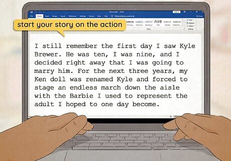 Start your story on the action. You want to hook your reader from the first sentence. That means your two main characters need to meet as soon as possible. Don't spend thousands of words giving the reader unnecessary backstory or separate interactions with other characters. This is a romance - get the two characters into the same scene as soon as possible. Start the story with the scene where the two main characters meet. Just jump straight into the romance.